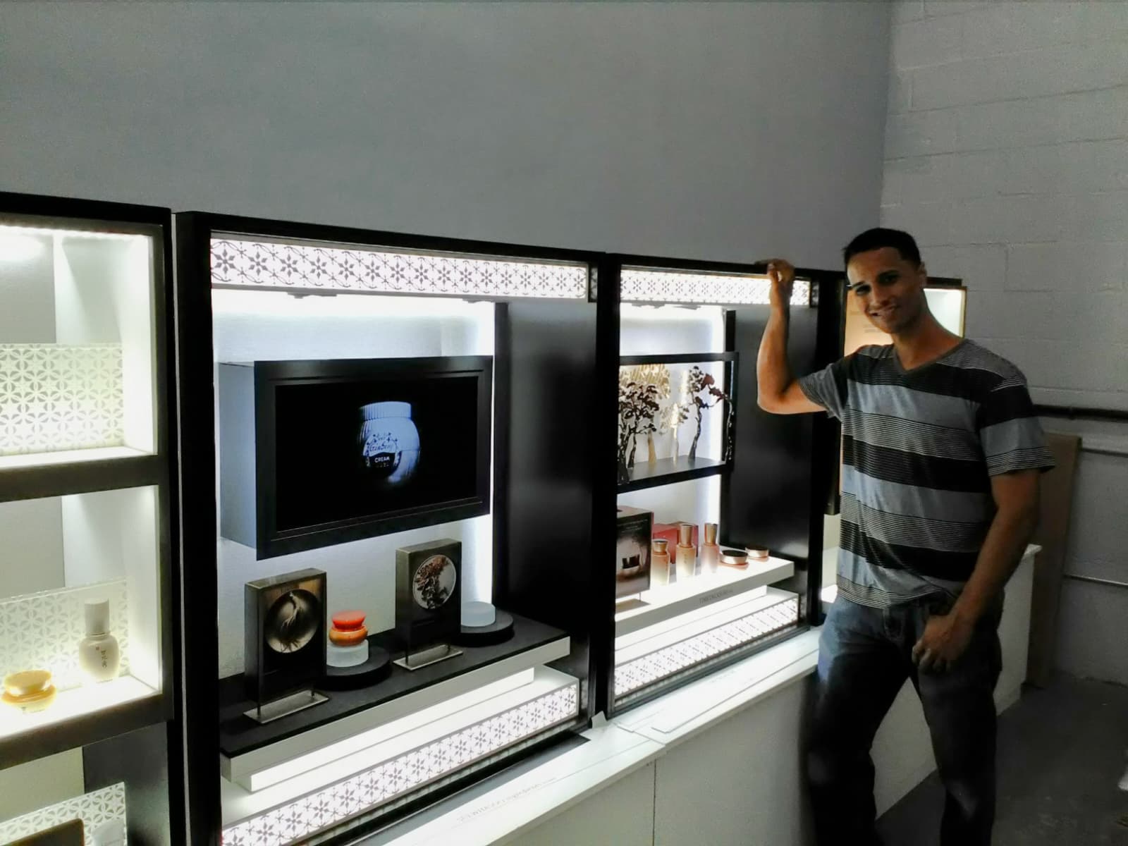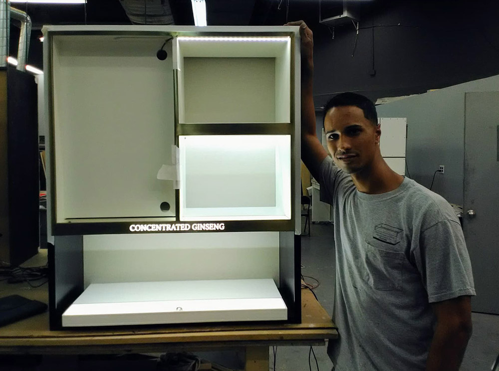 Más adelante vivió un tiempo en Estados Unidos, trabajando con varios fabricantes, lo que le dio exposición a proyectos de mayor escala y distintos métodos de producción. Durante su carrera, Erick fue diseñador y "team leader" en Ovation In‑Store, donde se especializó en la creación de exhibidores comerciales, vitrinas y mobiliario para tiendas y negocios. Esta experiencia lo convirtió en un especialista en gabinetes y displays de alta precisión, un área donde continúa destacándose hoy.
